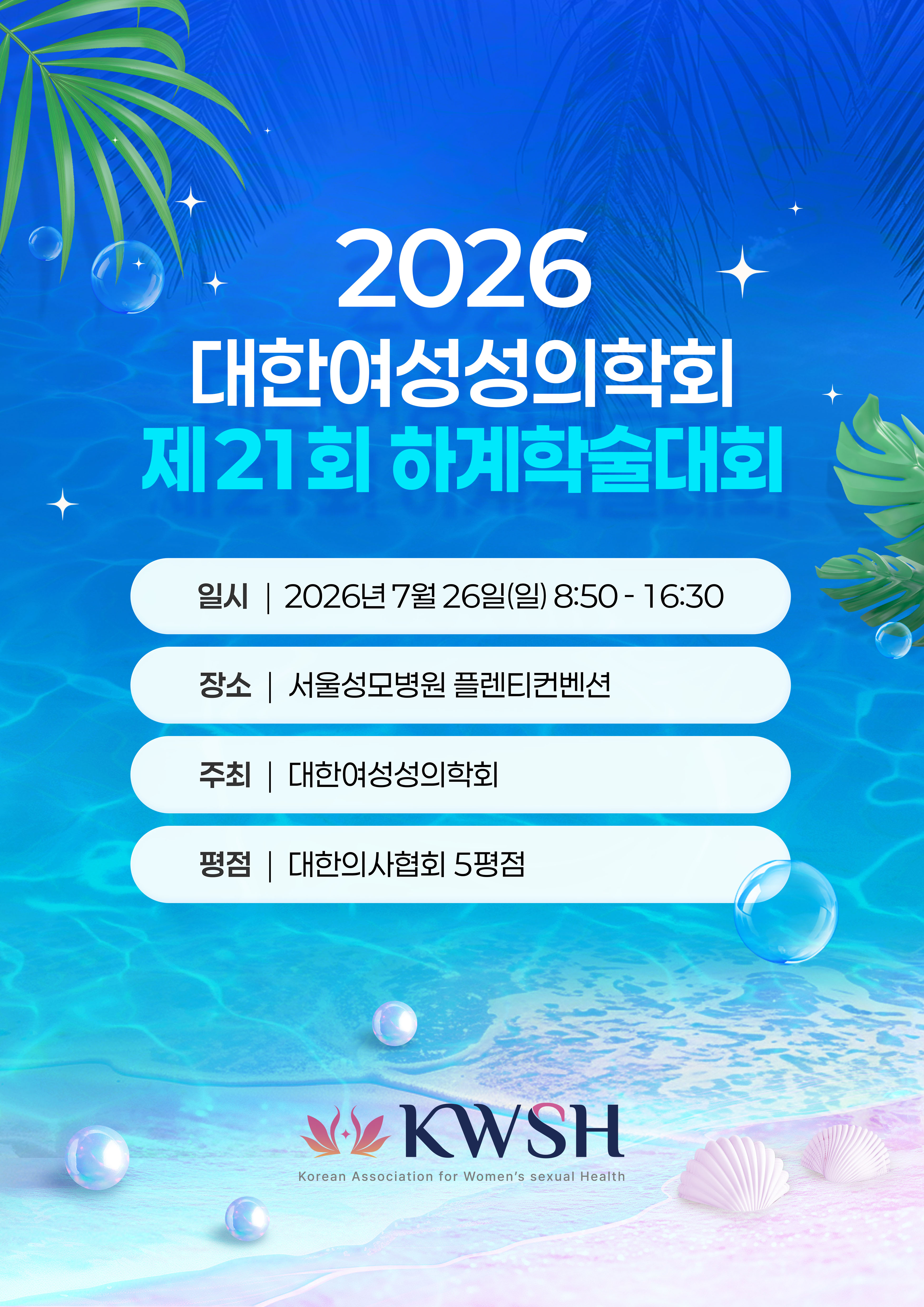 | • | 6.29(일) 대한여성성의학회 2025년 춘계학술대회 개최 | [2025-05-12] |